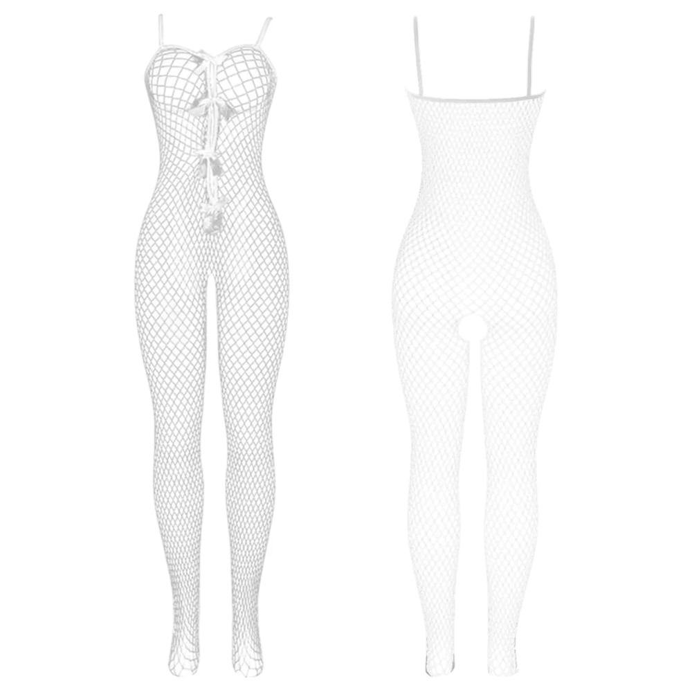 - 1 darab fehér hálós bodystocking nyitott ágyékrésszel és masnis díszítéssel