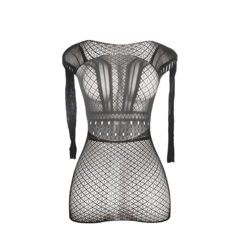 Ez a hátul nyitott, fekete mini ruhaként viselhető fehérnemű egyesíti a modern eleganciát és az érzéki csábítást, különleges estékre teremtve felejthetetlen megjelenést!