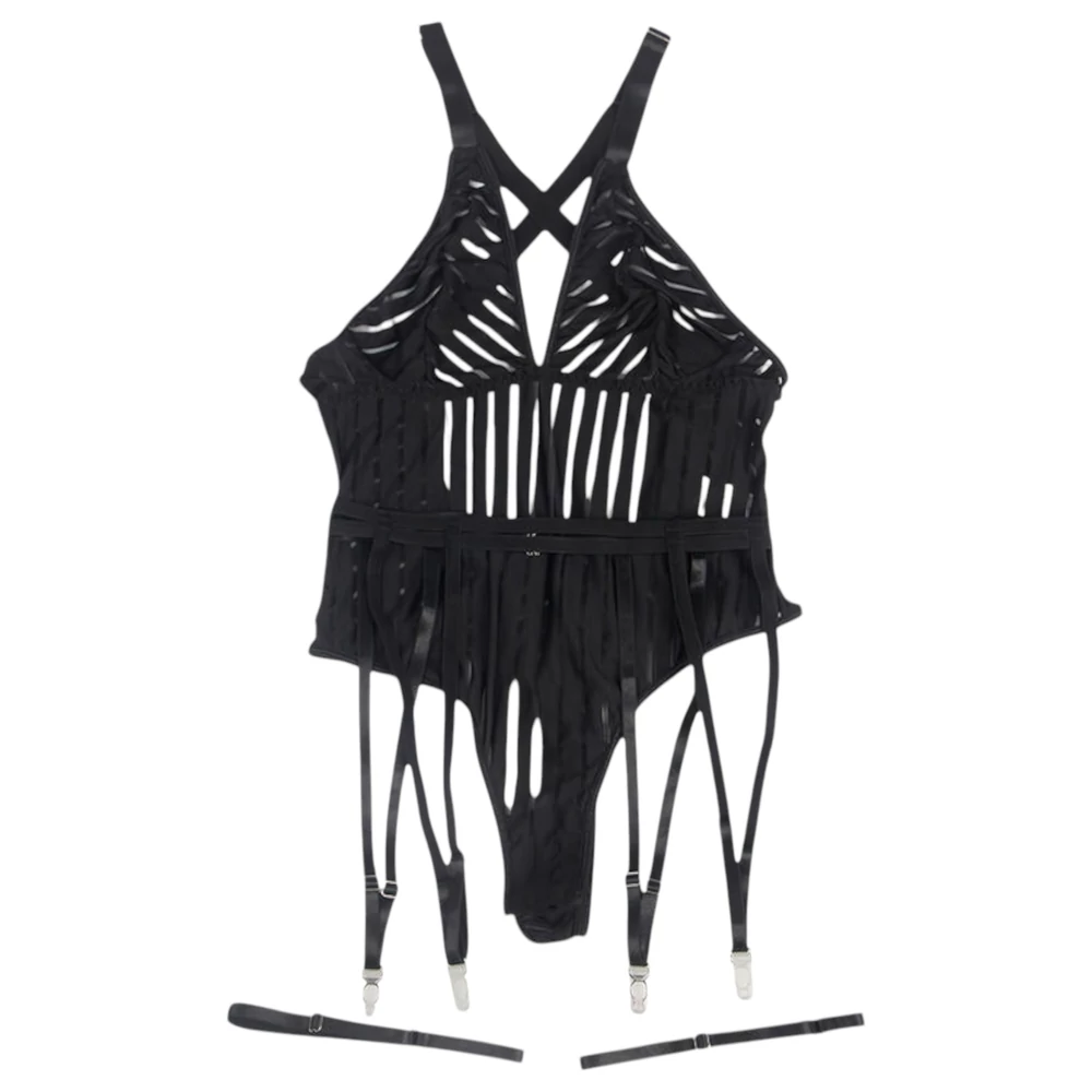 - Kialakítás: hosszú ujj nélküli body harisnyatartós megoldással