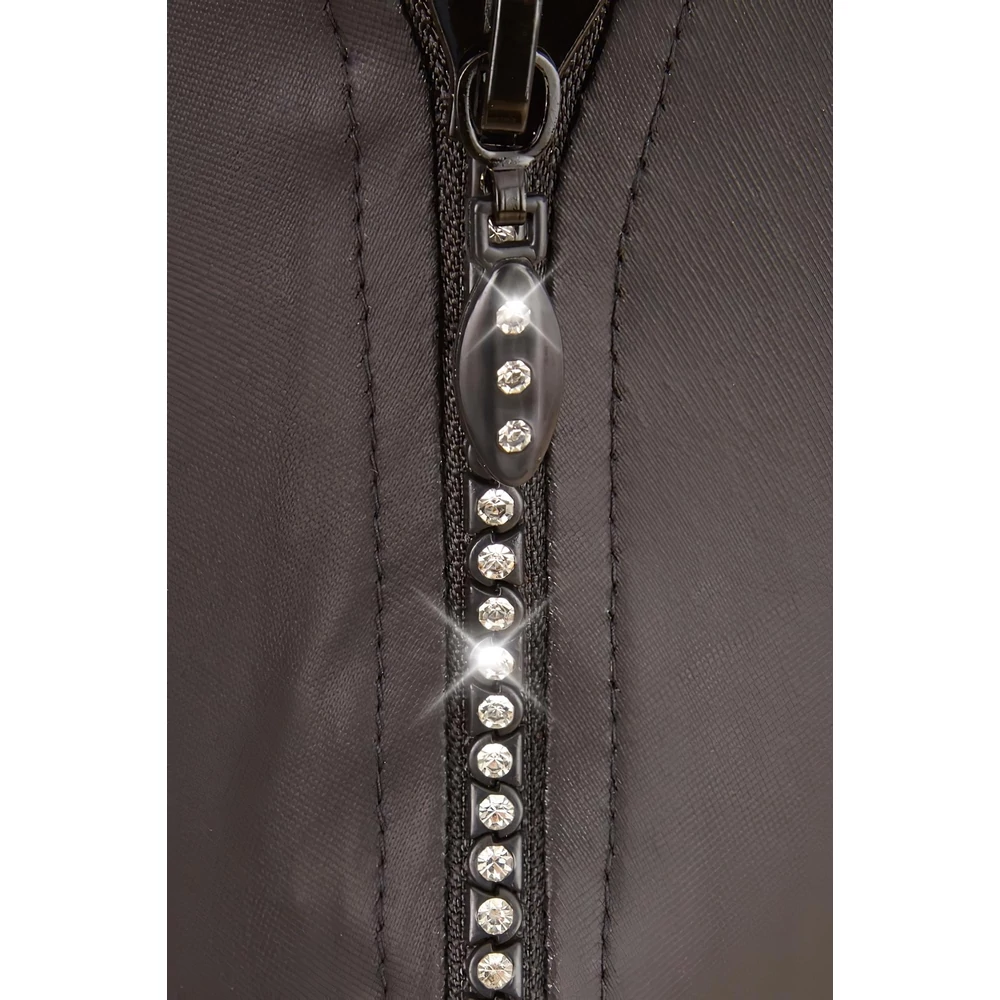 - Elülső részen csillogó strasszköves cipzárral