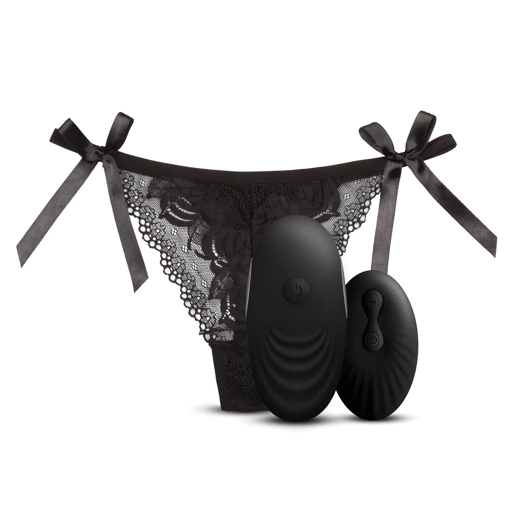 Egy csendes, titkos csiklóvibrátor, melyet egyszerűen a mellékelt csipkés tanga rejtett zsebébe helyezhetsz.