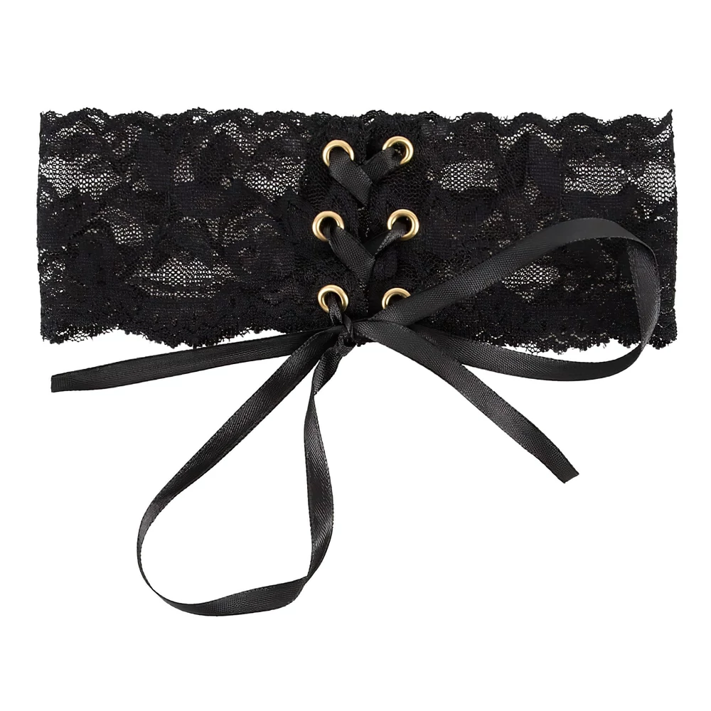 Cottelli - Széles, fűzős csipke nyakpánt (fekete)