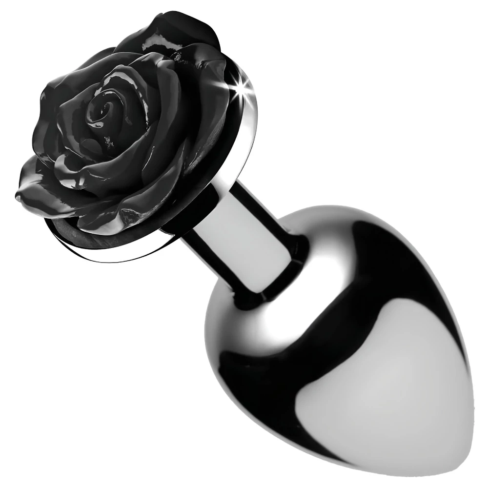 Booty Sparks Black Rose - alumínium anál plug (ezüst-fekete)