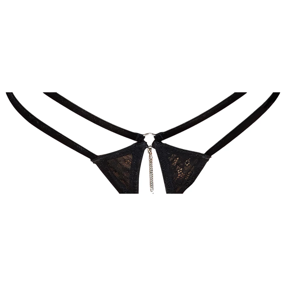 - 1 db szeméremnél nyitott csipke tanga ezüst lánccal