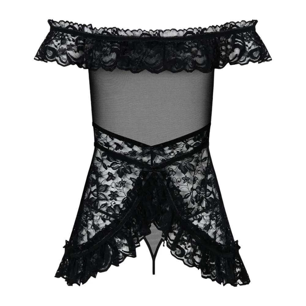 Obsessive Flores - fodros babydoll és tanga (fekete)