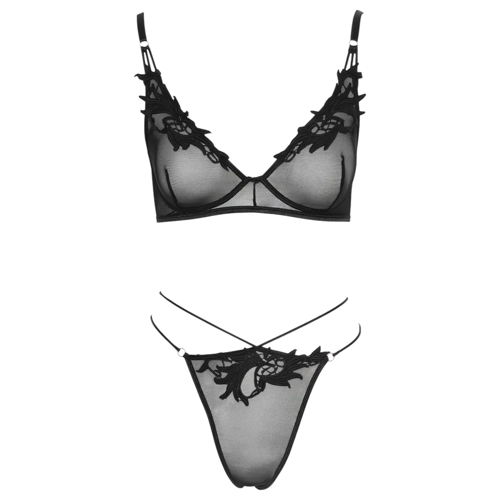 Cottelli - átlátszó, csipkés melltartó szett (fekete)