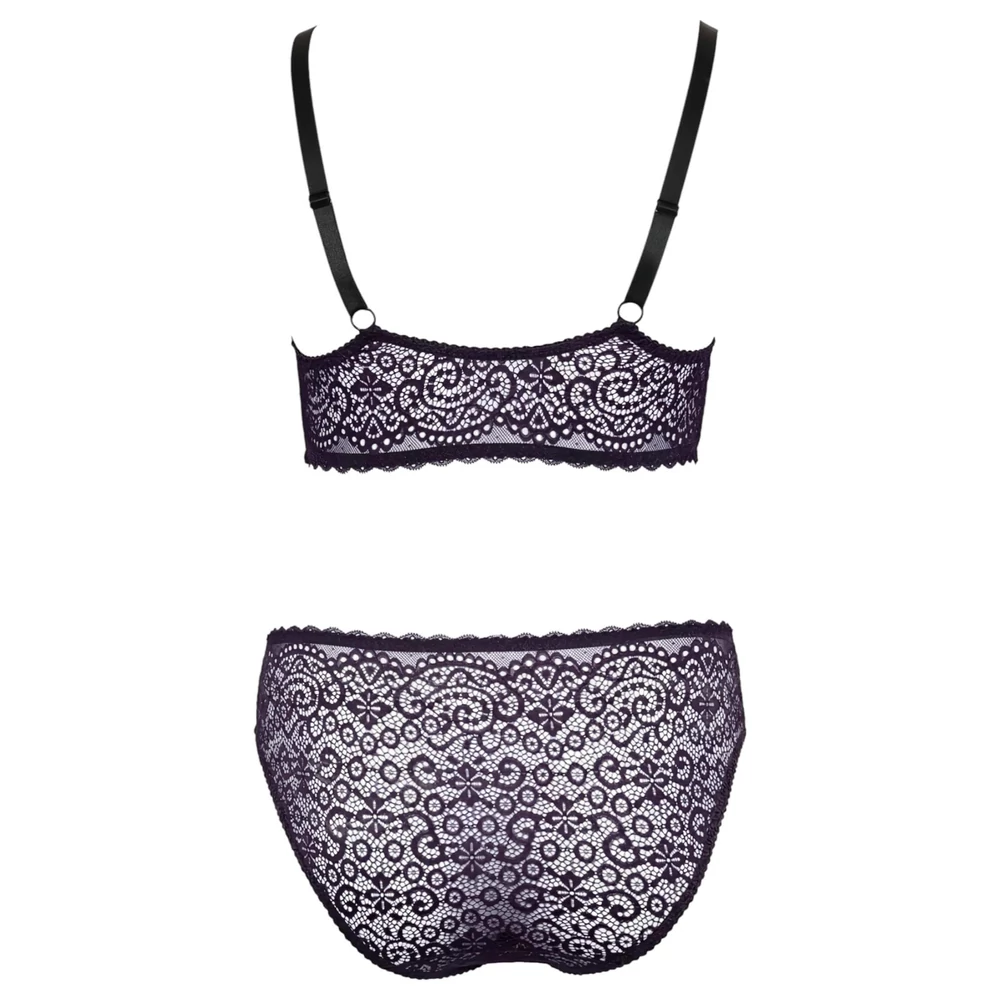 Cottelli Plus Size - áttetsző mintás melltartó szett (lila)