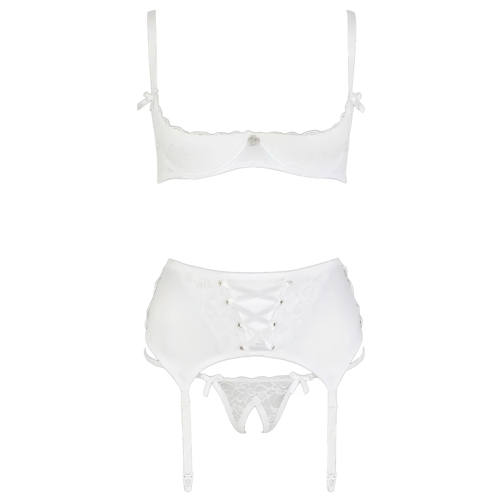 Egy érzéki fehérnemű szett, amely tökéletes választás a nászéjszakára és az intim együttlétekhez, hiszen viselése közben sem kell levenni!