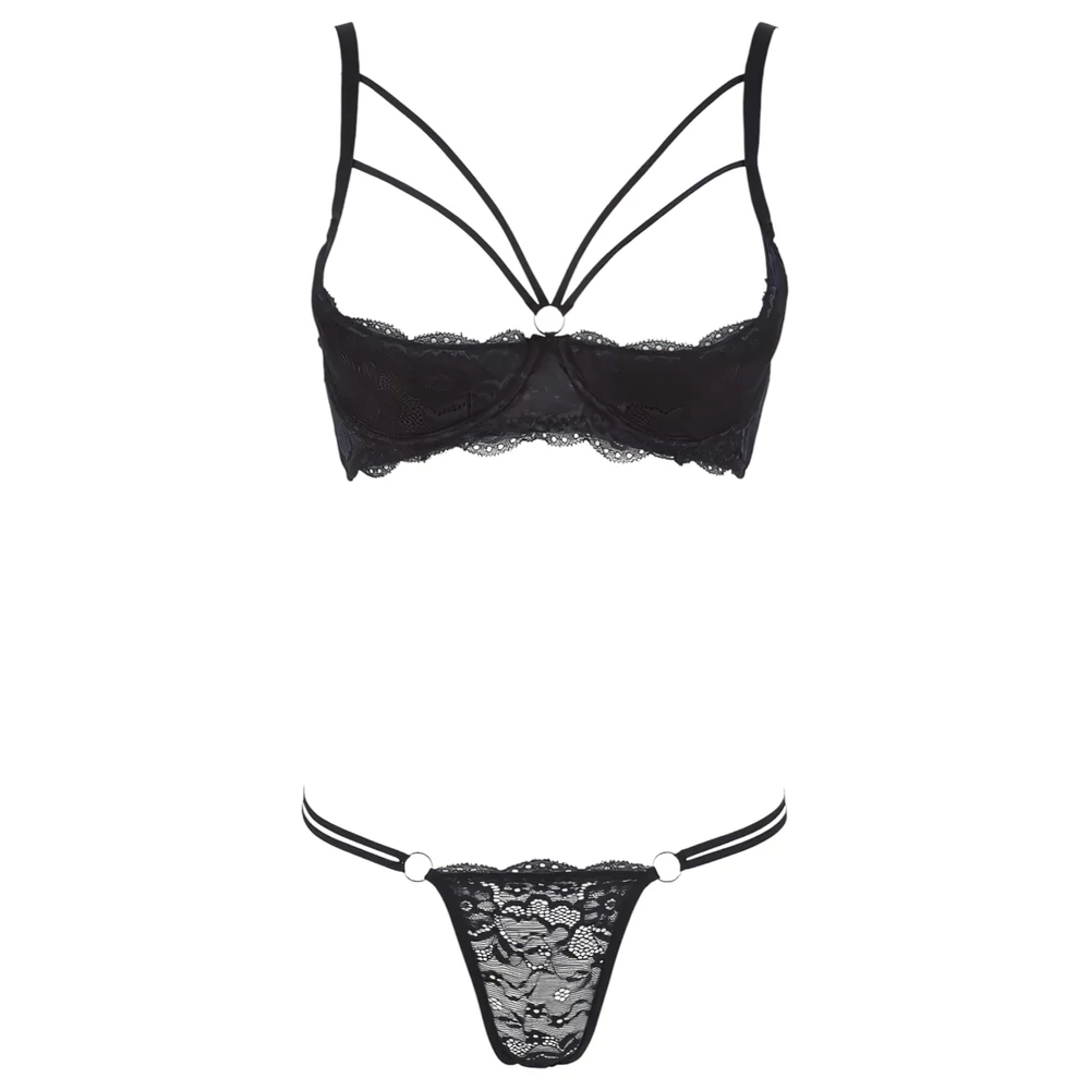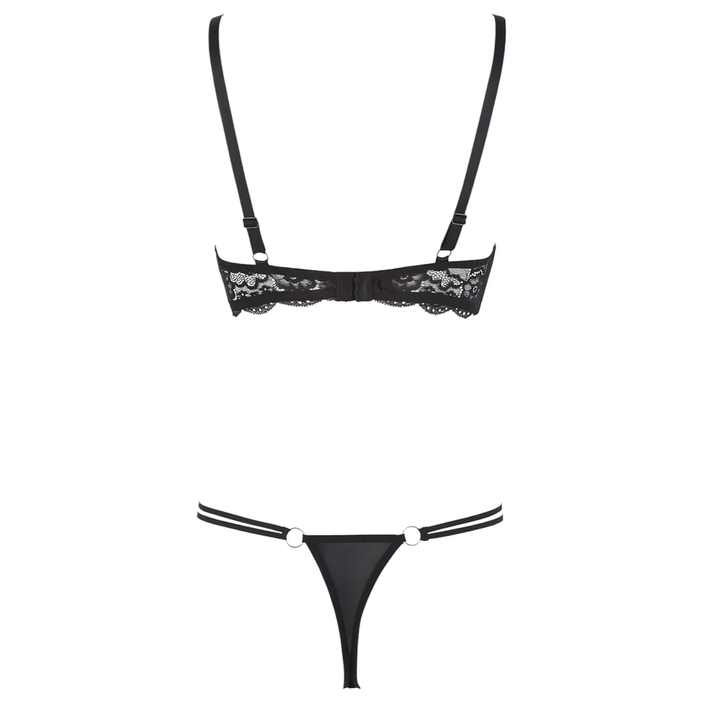 Cottelli - pántos, gyűrűs mellemelő és tanga (fekete)