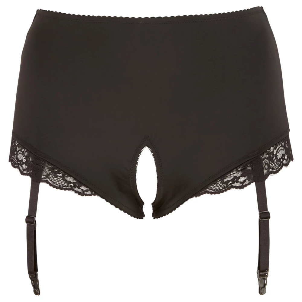 Cottelli Plus Size - harisnyatartós nyitott bugyi (fekete)