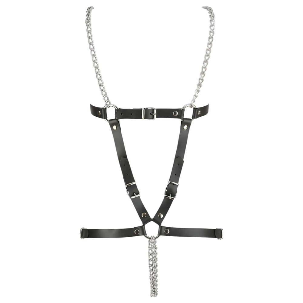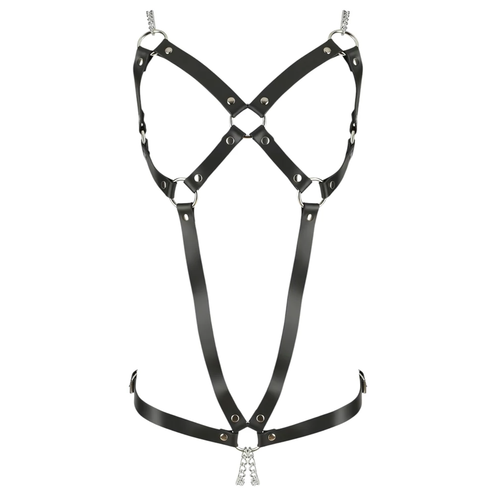 ZADO - láncos bőr testhám body - fekete (S-L)