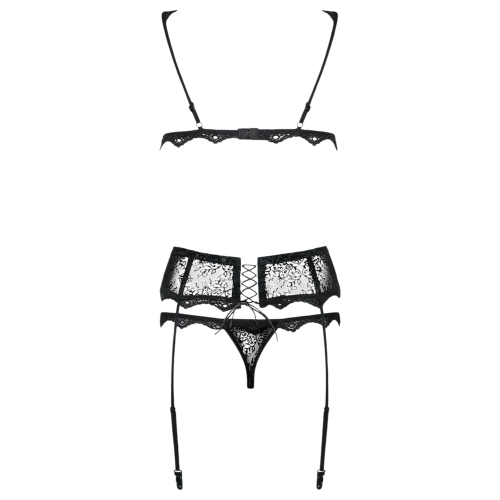 Obsessive Emperita - apró hímzéses fehérnemű szett (fekete)