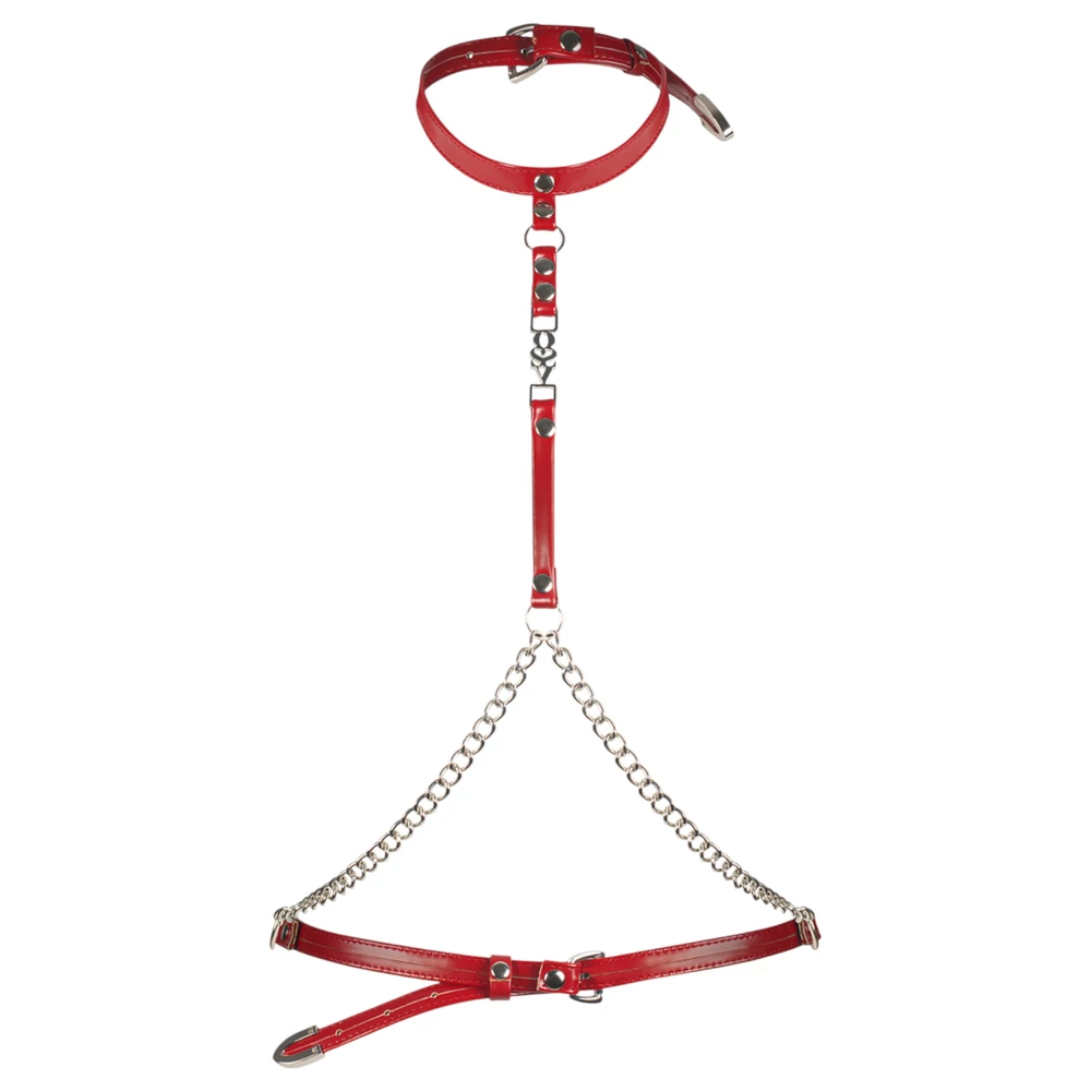 Obsessive Inferro - bőr hatású láncos testhám (piros)