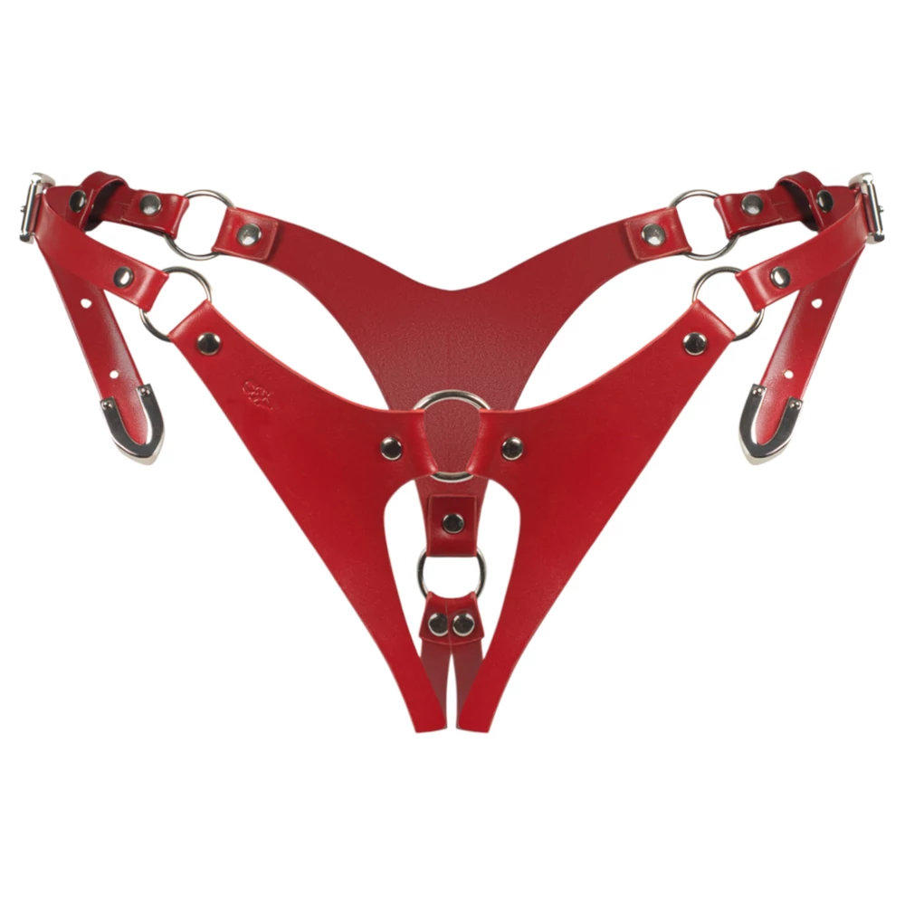 Obsessive Inferro - bőr hatású nyitott, állítható tanga (piros)