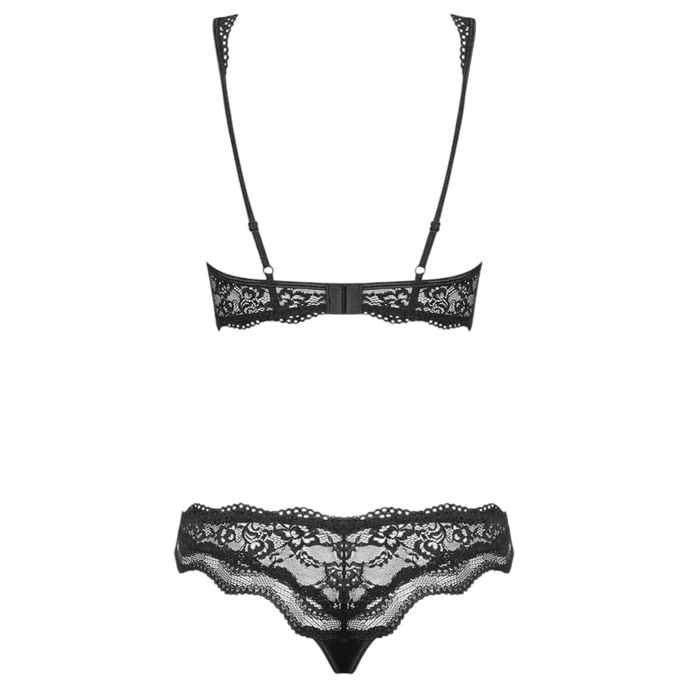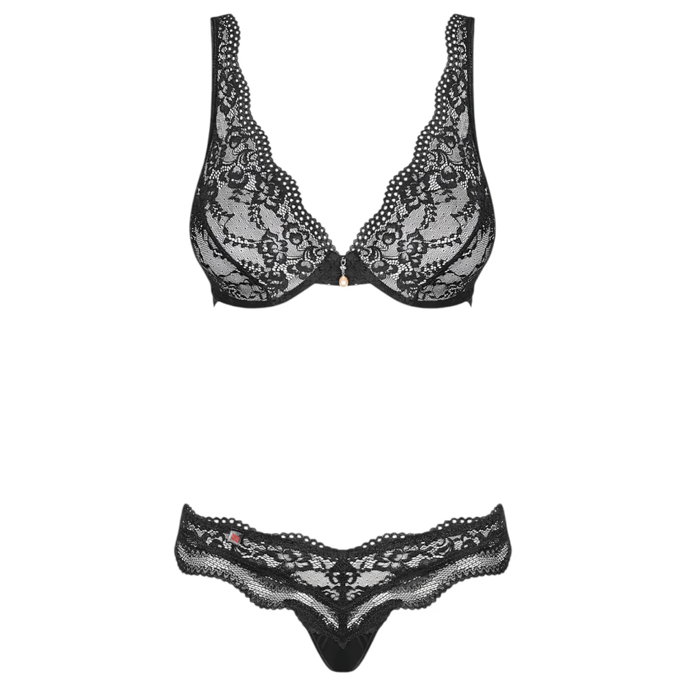 Obsessive Luvae - virágos, strasszos melltartó szett (fekete)