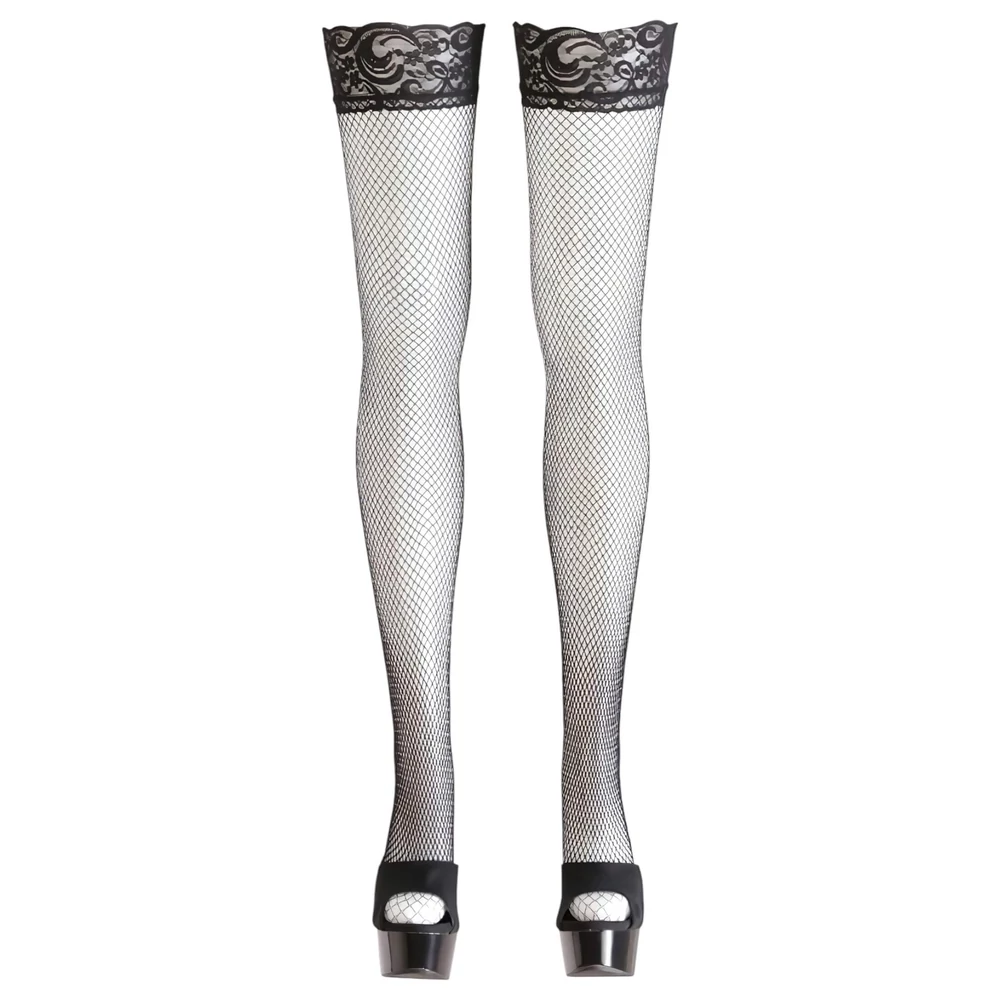 Apró szemű necc combfix széles, csipke szegéllyel.