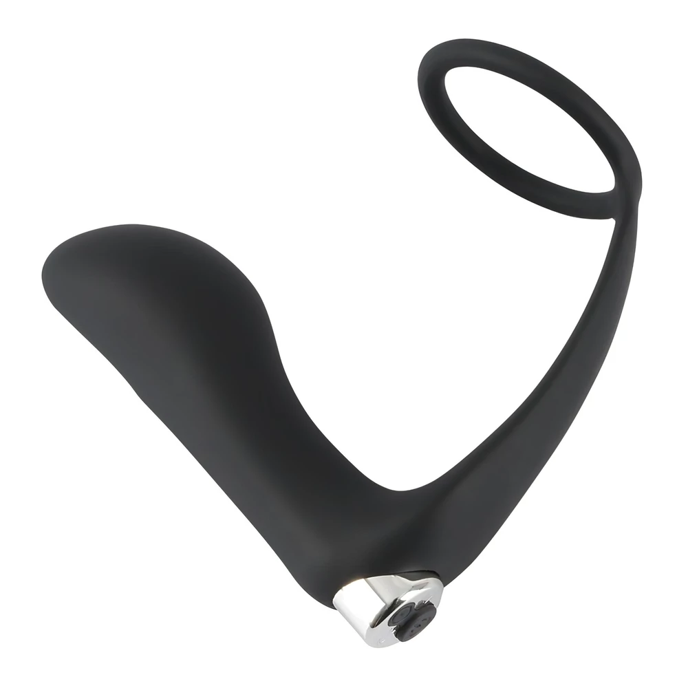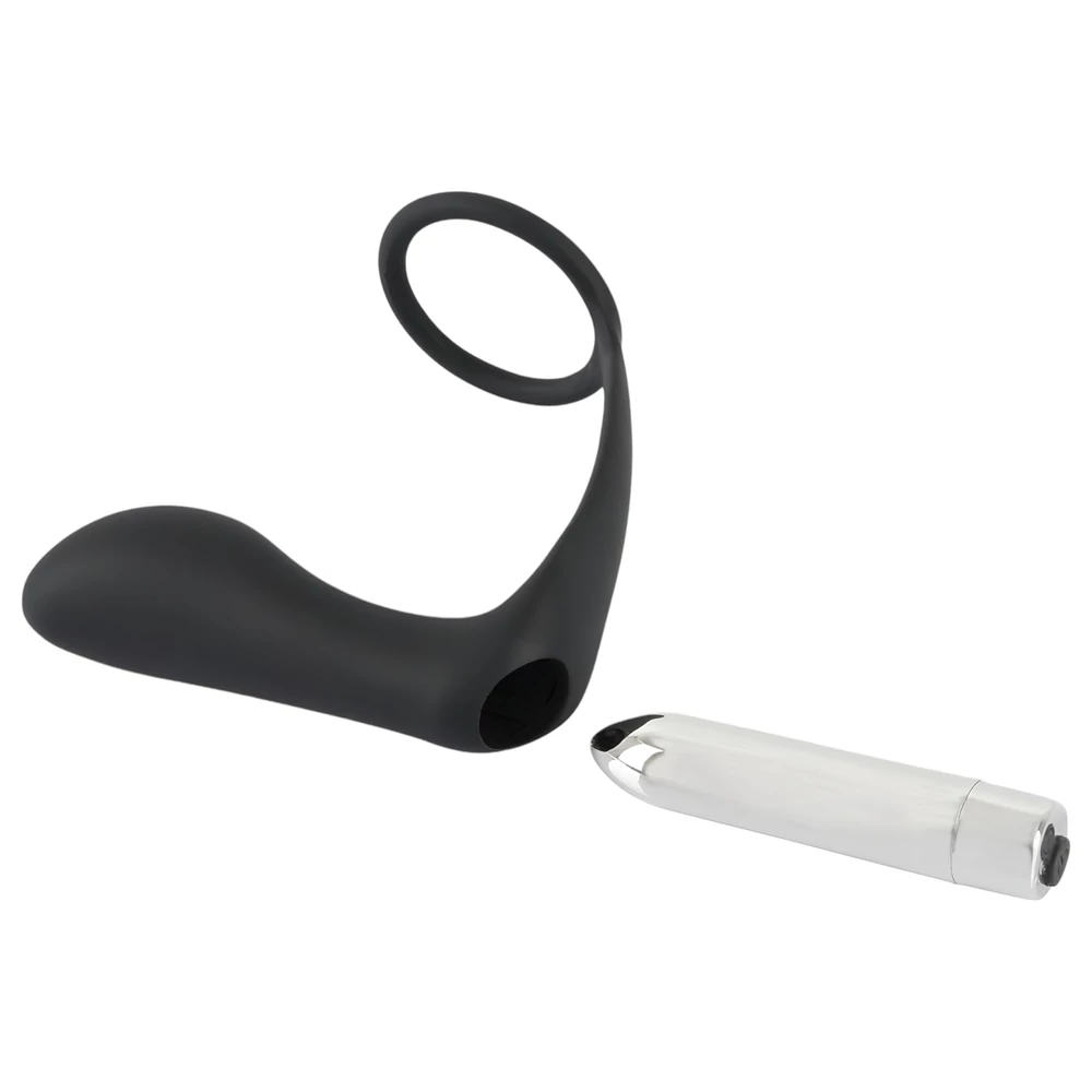 Black Velvets - anál vibrátor péniszgyűrűvel (fekete)